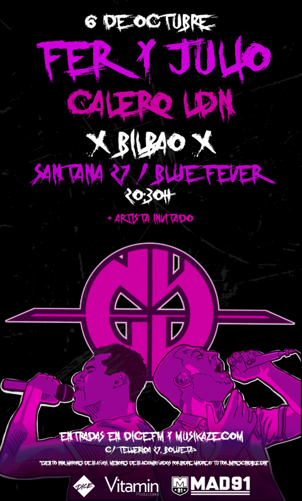 Este viernes 6 de octubre en la Sala Blue / Santana 27 Fer y Julio vuelven a Bilbao donde también estará Calero LDN. Apertura puerta...