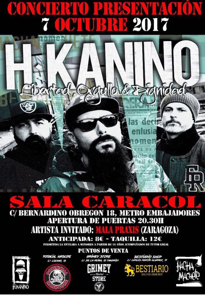 Este próximo sábado 7 H. Kanino estará presentando su nuevo trabajo "Libertad, Orgullo & Dignidad" en la Sala Caracol (Madrid) junt...