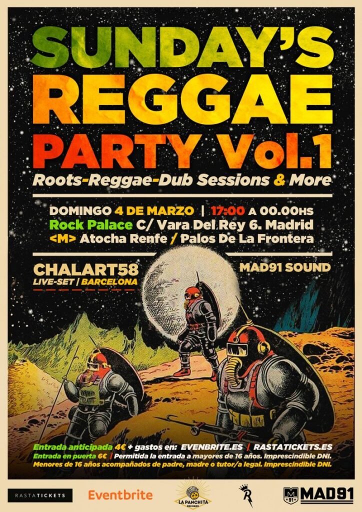 El domingo 4 de marzo no puedes faltar a esta sesión del mejor Roots, Reggae& Dub & con Chalart58 live-set y Mad91 Sound. A par...