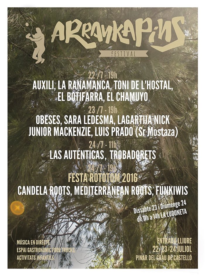 Del 22 al 24 de julio en Pinar del Grau de Castelló se va a celebrar el "Arrankapins Festival" con Mediterranean Roots o Lagartija Nick...