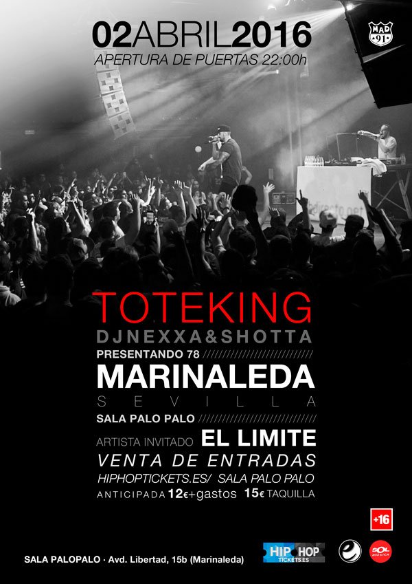 El viernes 1 de abril en Granada Tote King estará presentando "78" junto a Shotta y Dj Nexxa y como invitados actuarán El Limite. Aper...