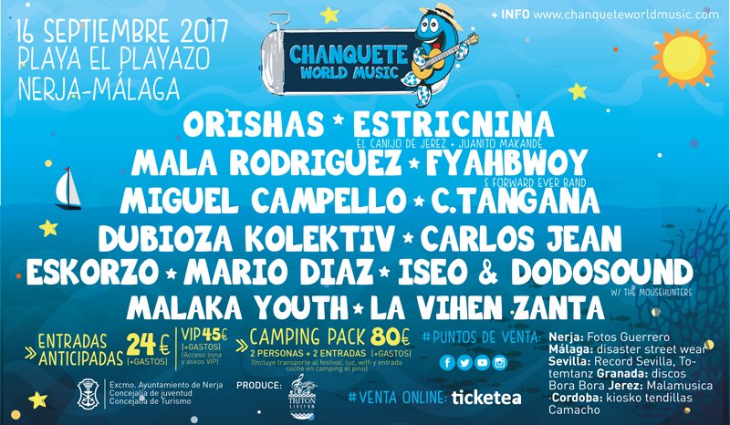 El 16 de Septiembre Fyahbwoy & Forward Ever Band, Malaka Youth, Iseo & Dodosound o C. Tangana estarán en el festival "Chanquete...