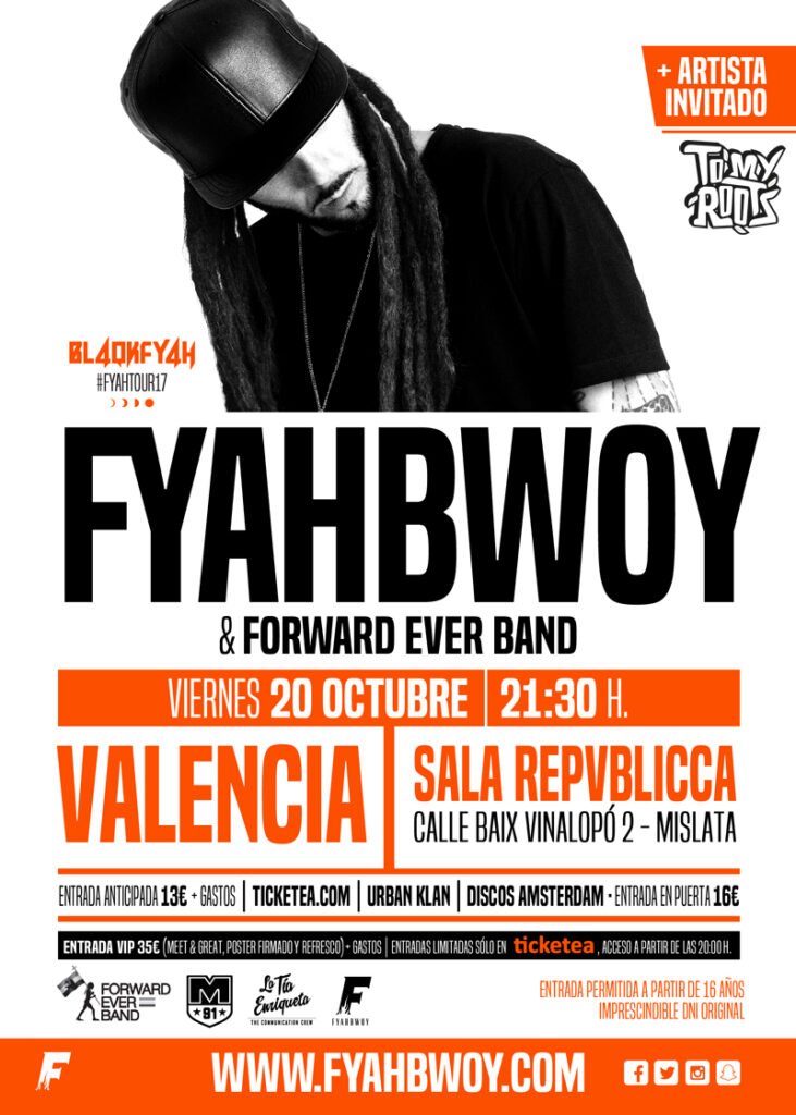 Fyahbwoy y Forward Ever Band estarán este próximo viernes 20 de octubre en la sala "Repvblicca" de Valencia. Desde las 21:30 horas y co...