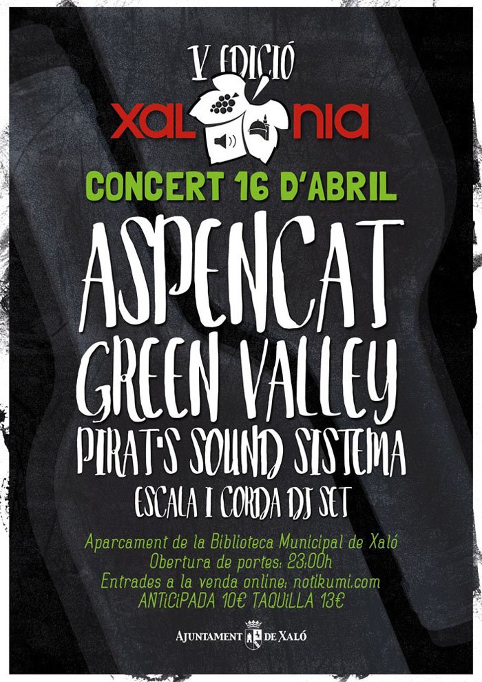 El 16 de abril se celebra la V edición de "Xalonia" y en el que participarán Green Valley. Desde las 23:00 horas Aparcamiento de la Bi...