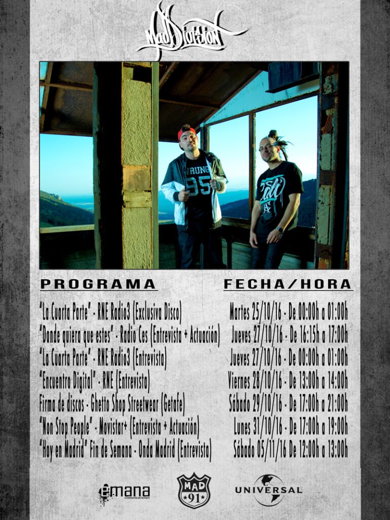 Aquí os dejamos el cartel informativo contadas las entrevistas en los medios que harán Mad Division en los siguientes días. - “La Cuar...