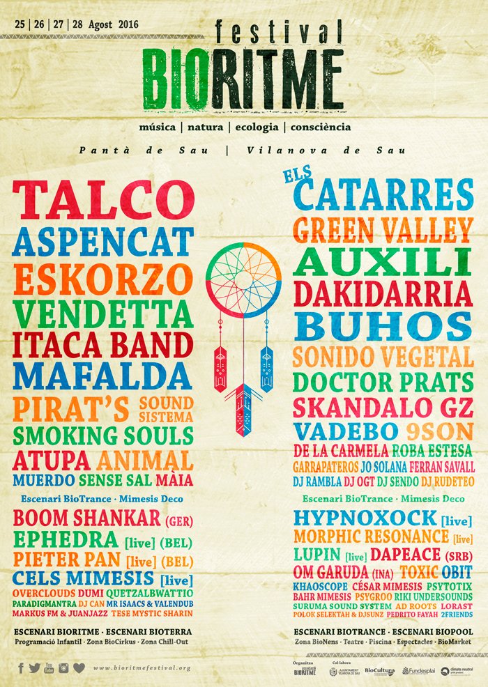 Del 25 al 28 de agosto en el pantano de Sau (Vilanova de Sau, Barcelona) se celebrará el "Bioritme Festival 2016" donde actuarán Green ...