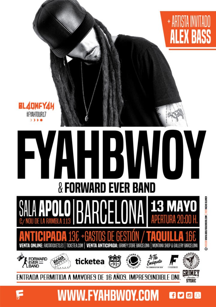 Aquí os dejamos las fechas confirmadas de #FyahTour17 de Fyahbwoy junto a Forward Ever Band, mas fechas por confirmar.