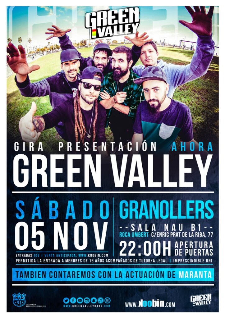 El próximo sábado 5 de noviembre Green Valley estarán presentado #AHoRA en Granollers y como invitados actuaran Maranta. Apertura de p...