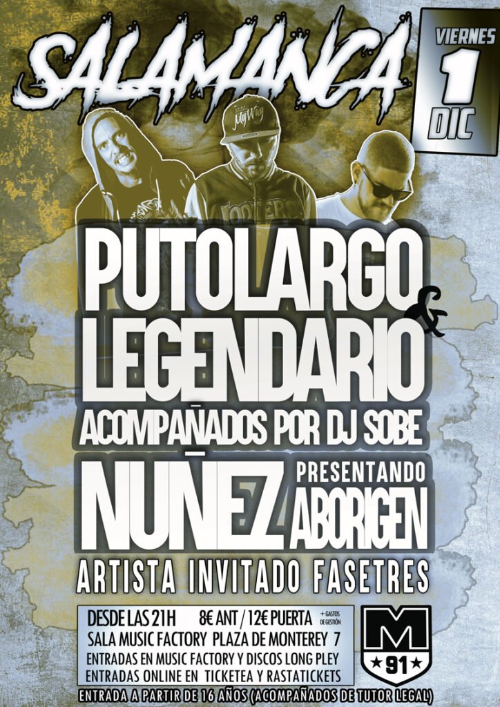 Este viernes 1 de diciembre Putolargo & Legendario acompañados por Dj Sobe estarán en la sala Music Factory de Salamanca. Y también...