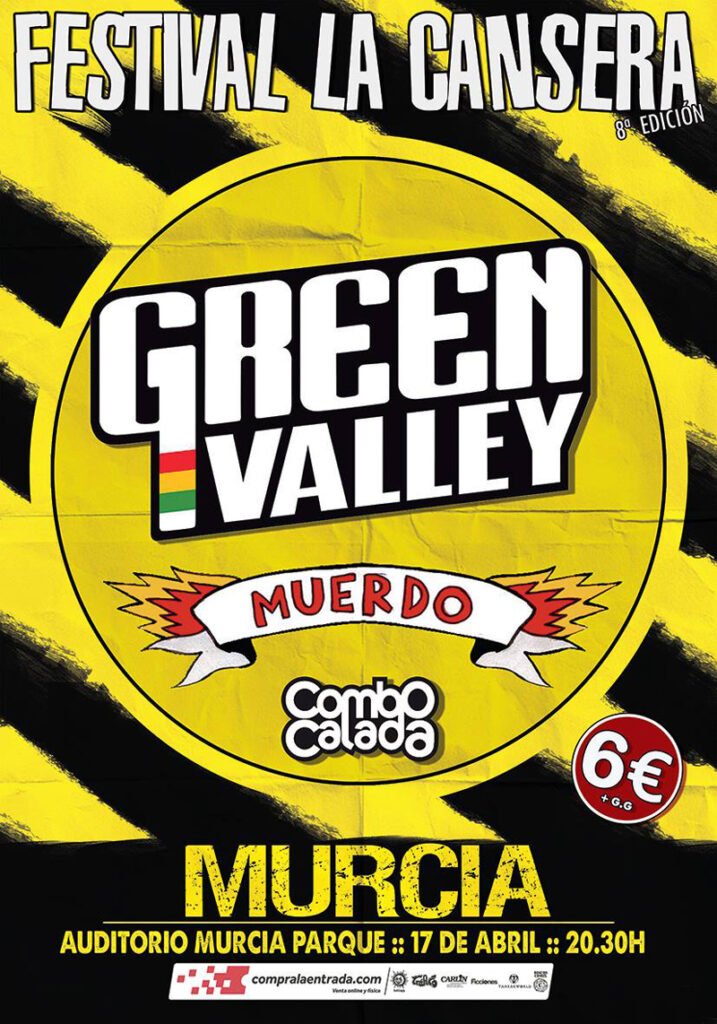 El próximo lunes 17 de Abril Green Valley estarán actuando en Murcia. Desde las 20:30 horas. Auditorio Murcia Parque C/Alcalde Gaspar ...