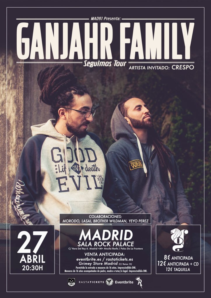 Este próximo viernes 27 de abril Ganjahr Family estarán en la sala Rock Palace de Madrid desde las 20:30, acompañados por Morodo, Lasai...