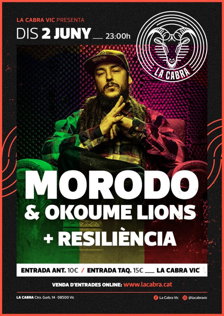 Este sábado 2 de junio Morodo y Okoumé Lions estarán en la sala La Cabra de Vic (Barcelona). Desde las 23:00 horas y con Resiliéncia co...